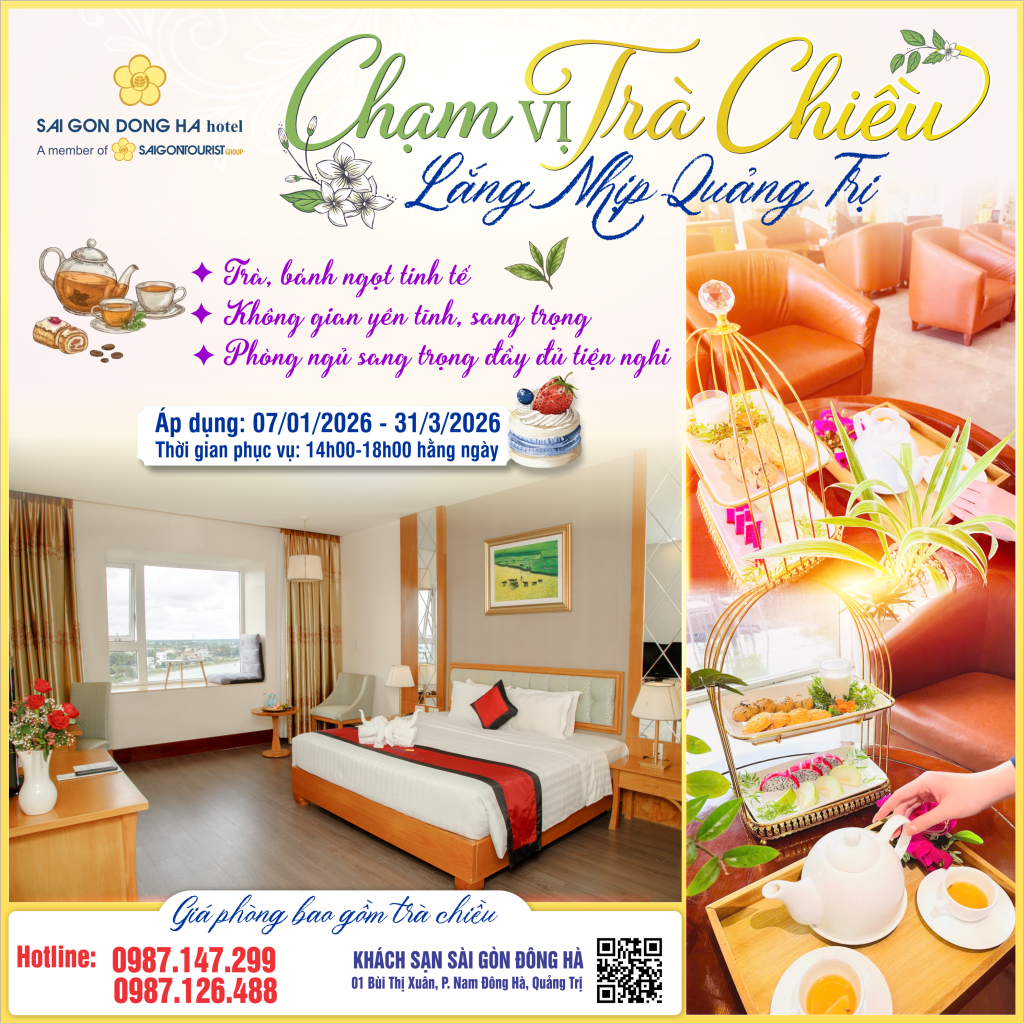 Tọa lạc tại trung tâm thành phố Đông Hà tỉnh Quảng Trị, khách sạn Sài Gòn Đông Hà đạt tiêu chuẩn quốc tế 4 sao, hệ thống phòng ngủ được thiết kế với kiến trúc hiện đại, quý khách sẽ được ngắm nhìn ra dòng sông Hiếu và toàn cảnh thành phố Đông Hà.